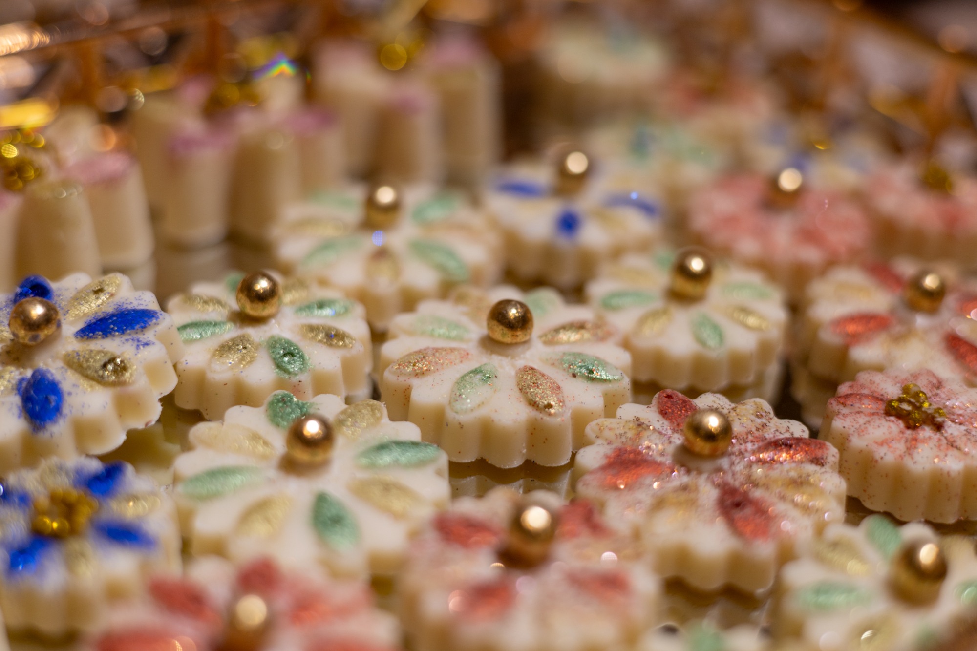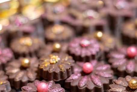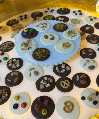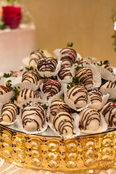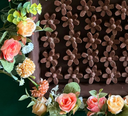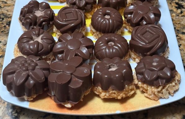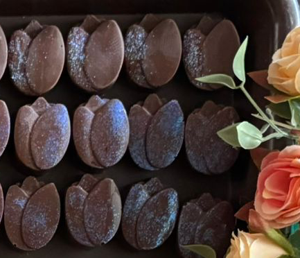 rellenos de dulce de leche y decorados con rosas de chocolate blanco, son un refinado y memorable manjar